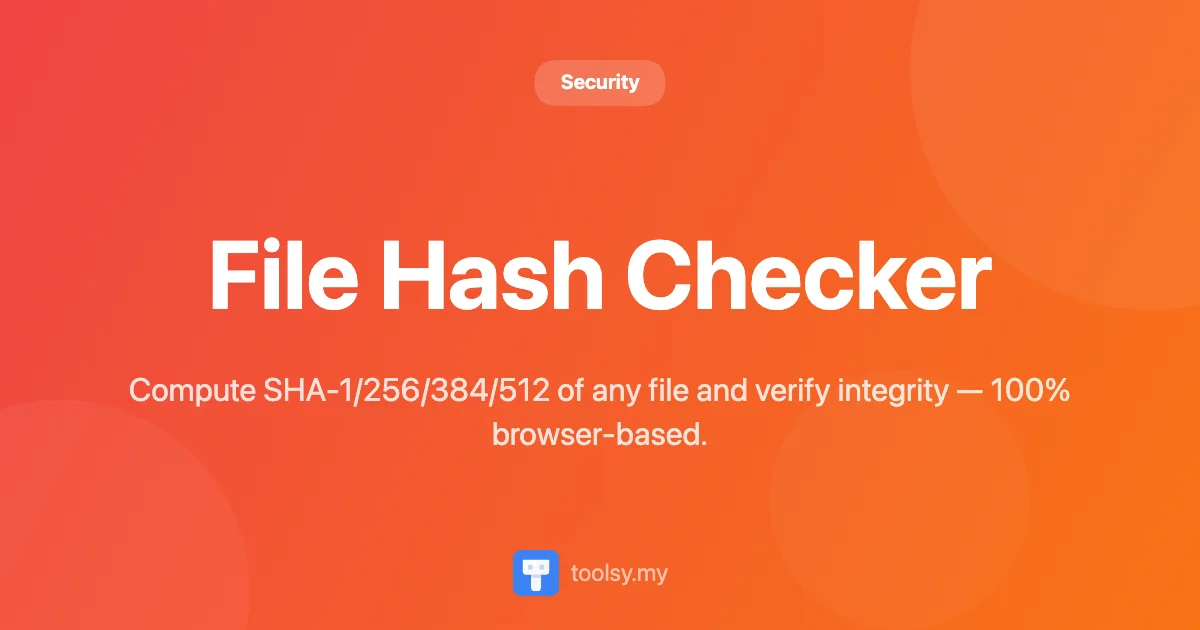 The File Hash Checker is a specialized security utility designed to compute cryptographic hashes of any file directly in your web browser. It utilizes the native Web Crypto API to ensure that all processing happens locally on your machine. This tool is built to handle files of any size and type, providing a versatile solution for checking everything from small text documents to multi-gigabyte ISO images.