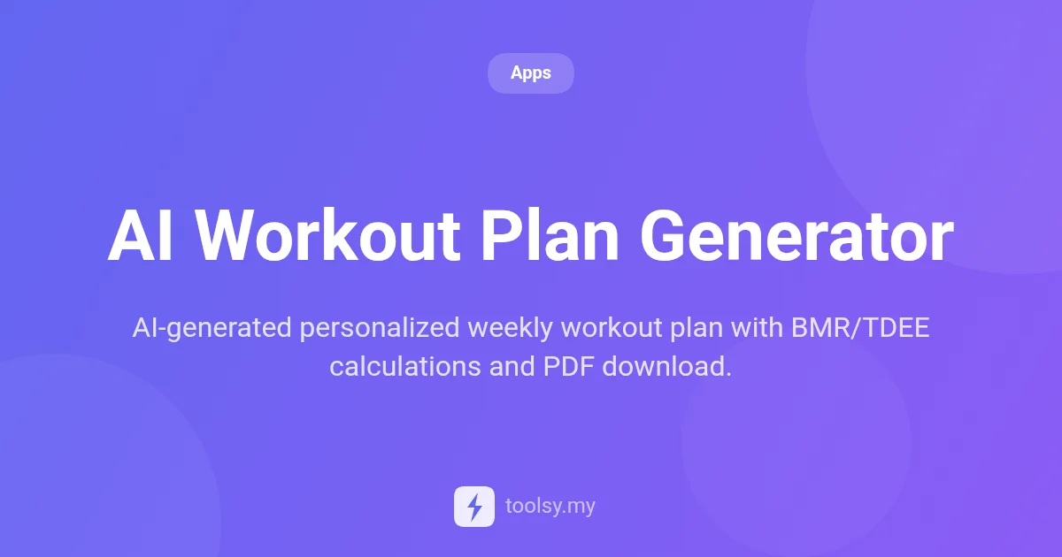 Stop guessing and start training with purpose. Visit https://toolsy.my/t/ai-workout-planner today and generate the last workout plan you'll ever need.