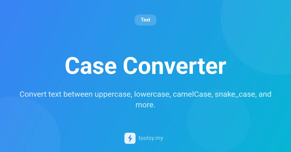 The Case Converter at toolsy.my is a specialized text utility that allows users to instantly transform strings of text into nine different case formats. It is built to serve a diverse audience, including developers, professional writers, and digital content creators who need to maintain strict formatting standards.