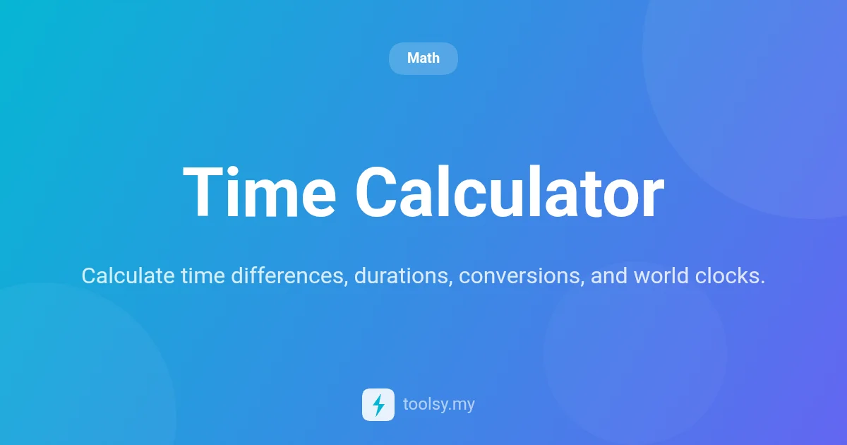 Calculate time differences, add durations, and convert units with our free Time Calculator. Professional tool for working hours, world clocks, and countdowns.