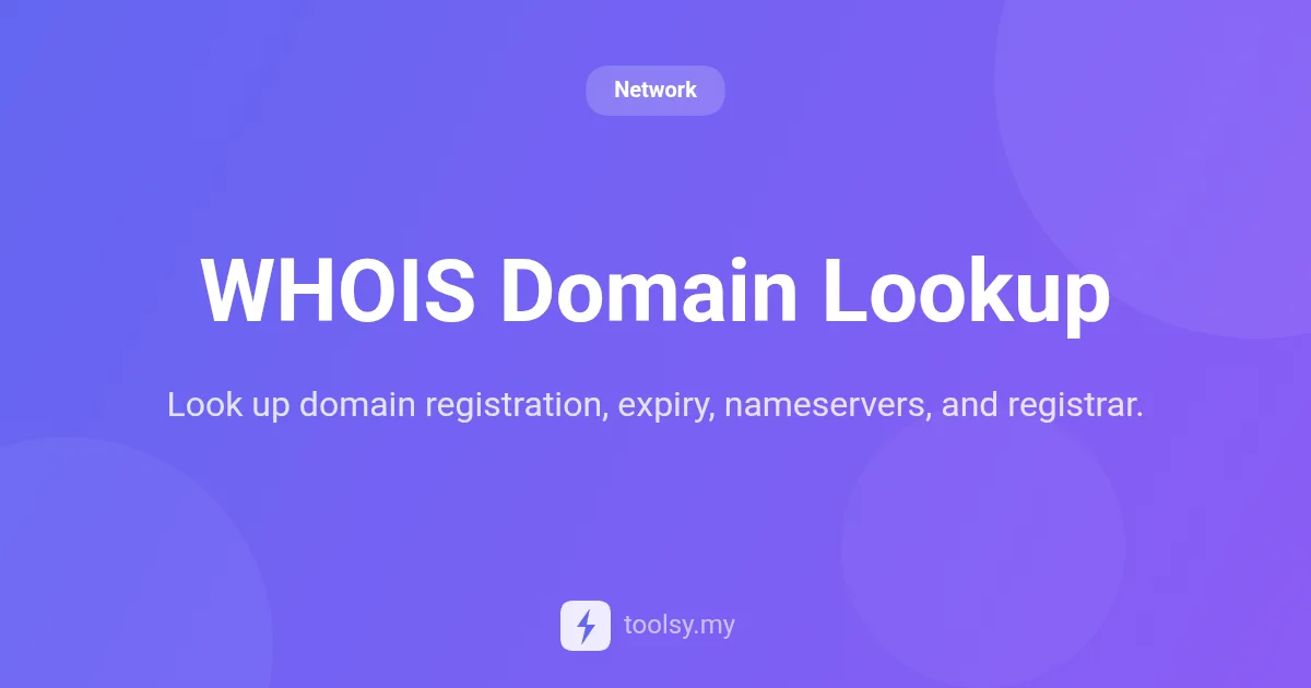 Traditional WHOIS services are often outdated or slow. Our tool leverages the RDAP protocol—the modern successor to WHOIS—to fetch precise, structured data about any domain name. By using this tool, you can skip the command line and get a clean, readable report of any domain's lifecycle and technical configuration. You can access the tool directly at https://toolsy.my/t/whois-lookup.