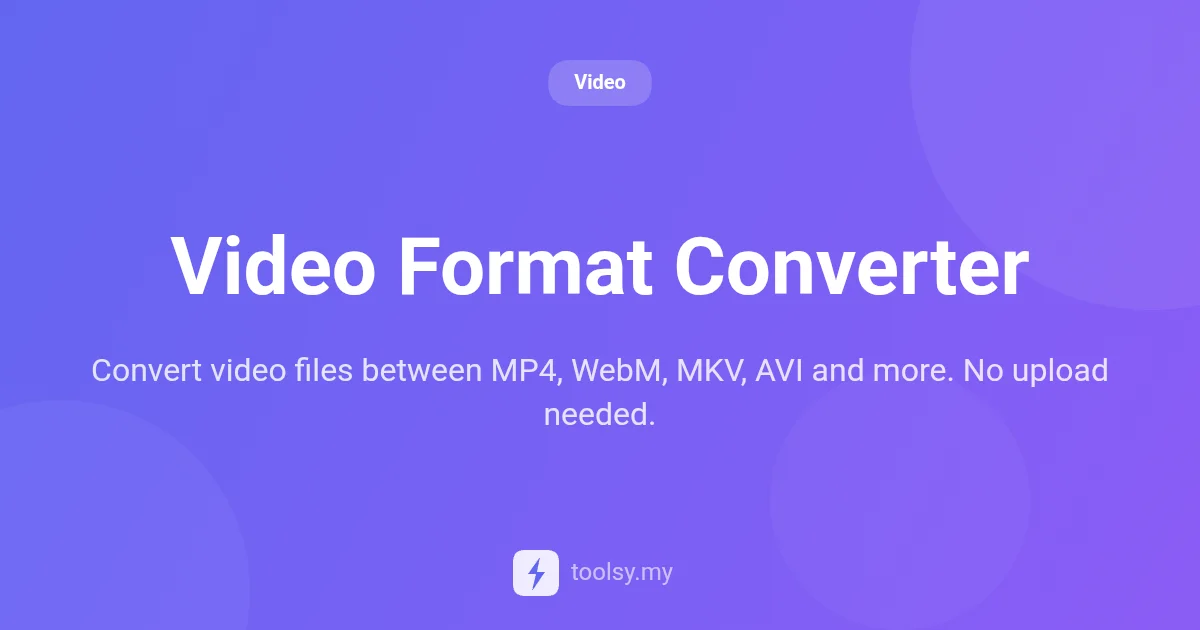 Ready to convert your first file? Experience the speed and security of local browser conversion at https://toolsy.my/t/video-converter today!