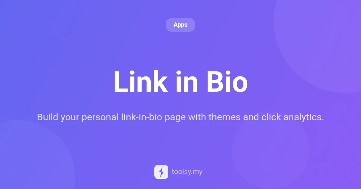 Build your personal link-in-bio page easily. Add unlimited links, choose from 5 themes, and track link clicks with our free Link in Bio tool. Start now.