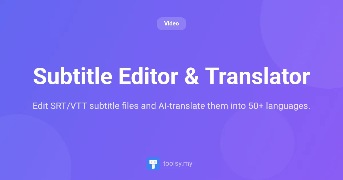 Enter the Subtitle Editor & Translator, a streamlined web-based solution designed to give you full control over your caption files. This tool eliminates the friction of subtitle management by providing an intuitive interface to modify text and timing, while leveraging advanced AI to break down language barriers in seconds. By using https://toolsy.my/t/subtitle-editor, you can ensure your captions are perfectly synced and localized for a global audience.