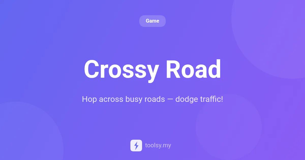 Ready to start hopping? Head over to https://toolsy.my/t/game-crossy-road and see how far you can go. Don't forget to check out related tools like Snake and Flappy Bird if you enjoy classic arcade challenges!