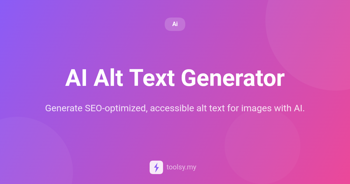 You can access the tool directly at https://toolsy.my/t/ai-alt-text-generator to start optimizing your visual assets immediately.