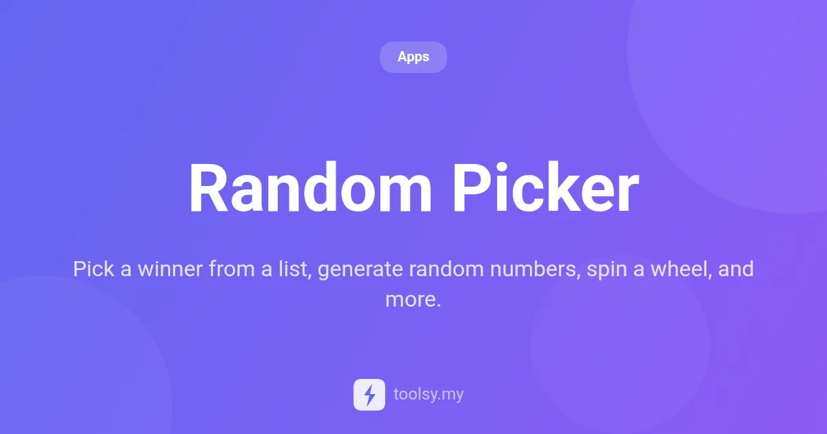 Based on the Random Picker manifest, here are the specific features you can utilize right now at https://toolsy.my/t/random-picker: