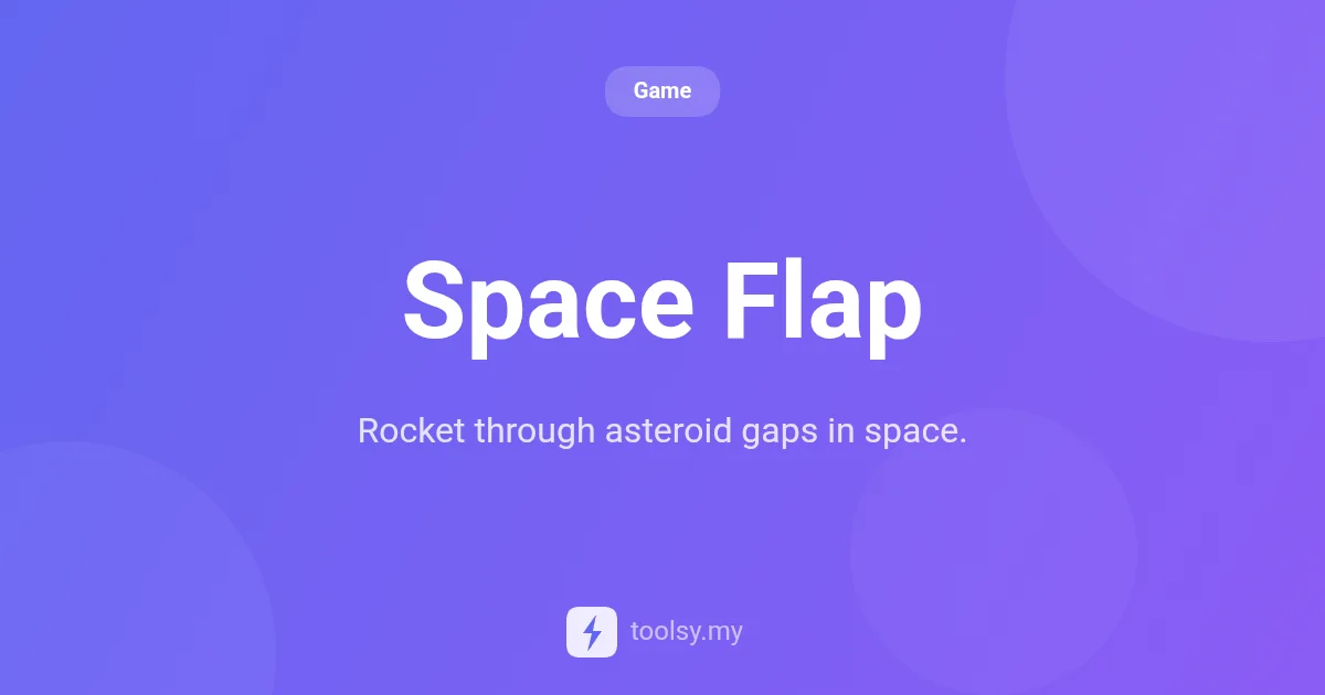 Built for the modern web, Space Flap is a free-to-play arcade game available at https://toolsy.my/t/game-flappy-bird. It combines the retro feel of 8-bit navigation games with a sleek space aesthetic. The game is designed to be played instantly in your browser, requiring no downloads or complex setups. It is all about physics, timing, and precision.