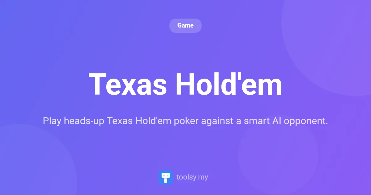 At https://toolsy.my/t/game-poker, we provide a streamlined, high-stakes environment where it is just you against a sophisticated AI dealer. This isn't just a game of luck; it is a battle of wits where you must manage your bankroll, read the board, and outmaneuver an opponent that knows when to push its advantage and when to retreat. It is time to see if you have what it takes to protect your stack and dominate the leaderboard.