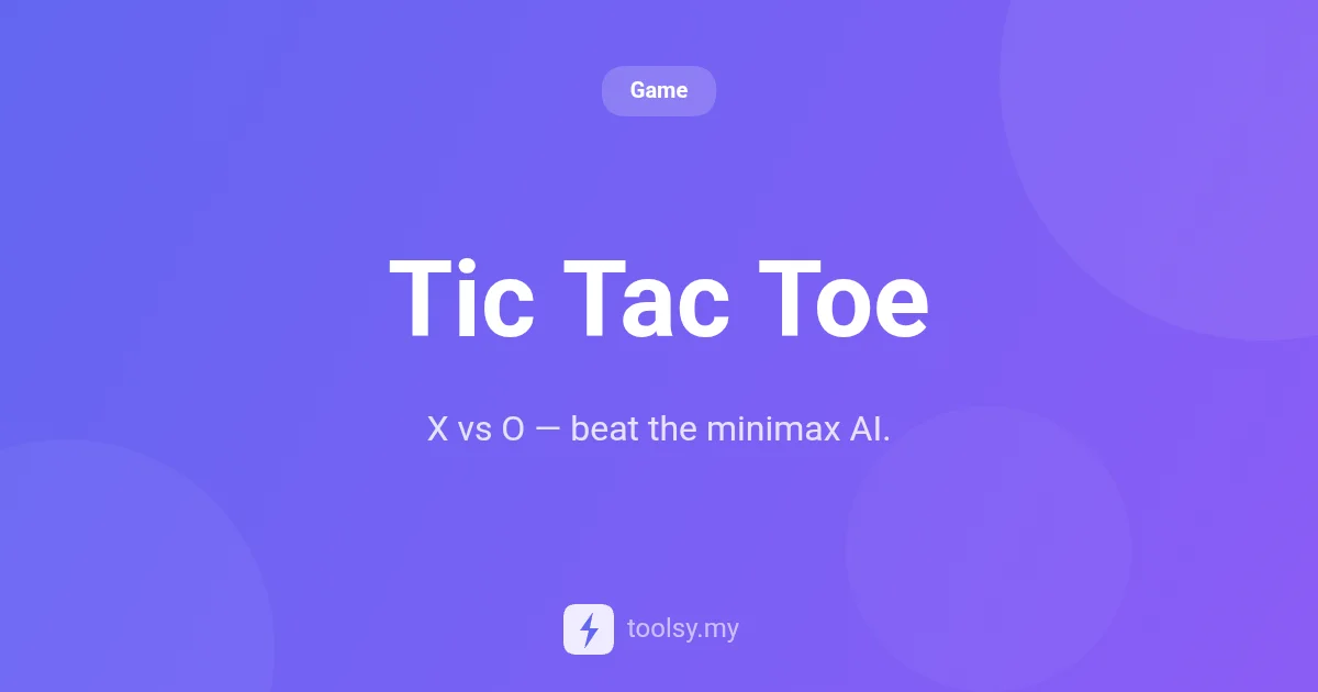 Tic Tac Toe is a digital version of the classic strategy game where two players compete to place three of their marks in a horizontal, vertical, or diagonal row. In this specific implementation at https://toolsy.my/t/game-tic-tac-toe, you play as 'X' against a smart AI opponent that plays as 'O'.