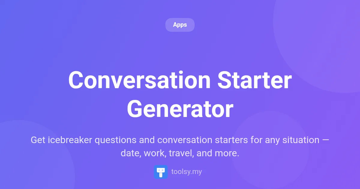 Communication is the foundation of every relationship, whether personal or professional. The Conversation Starter Generator is a simple yet powerful way to ensure that you always have the right words at the right time. By providing curated, context-specific icebreakers, it removes the stress of social interaction and lets you focus on what really matters: connecting with others.