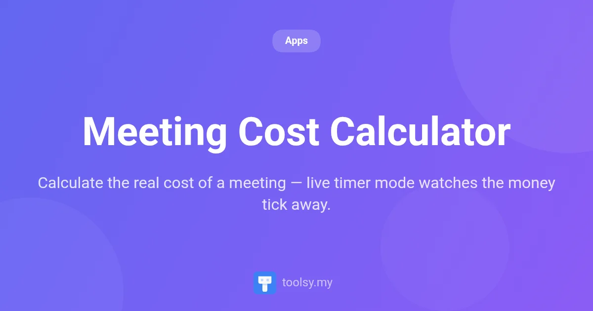 Ready to see what your time is really worth? Visit https://toolsy.my/t/meeting-cost-calculator and start calculating today. Stop wasting money and start making every minute count.