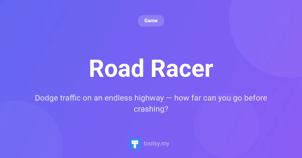 Are you ready to test your reflexes? Head over to https://toolsy.my/t/game-racing now, start your engine, and see how far you can go before the traffic catches up to you. Dodge, boost, and drive your way to the top of the charts today!