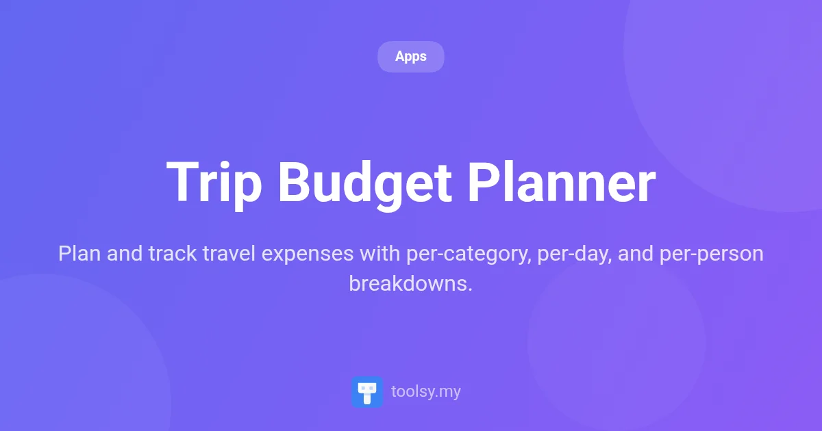 Ready to start planning your next adventure? Head over to https://toolsy.my/t/trip-budget-planner and create your first budget today. Happy travels!